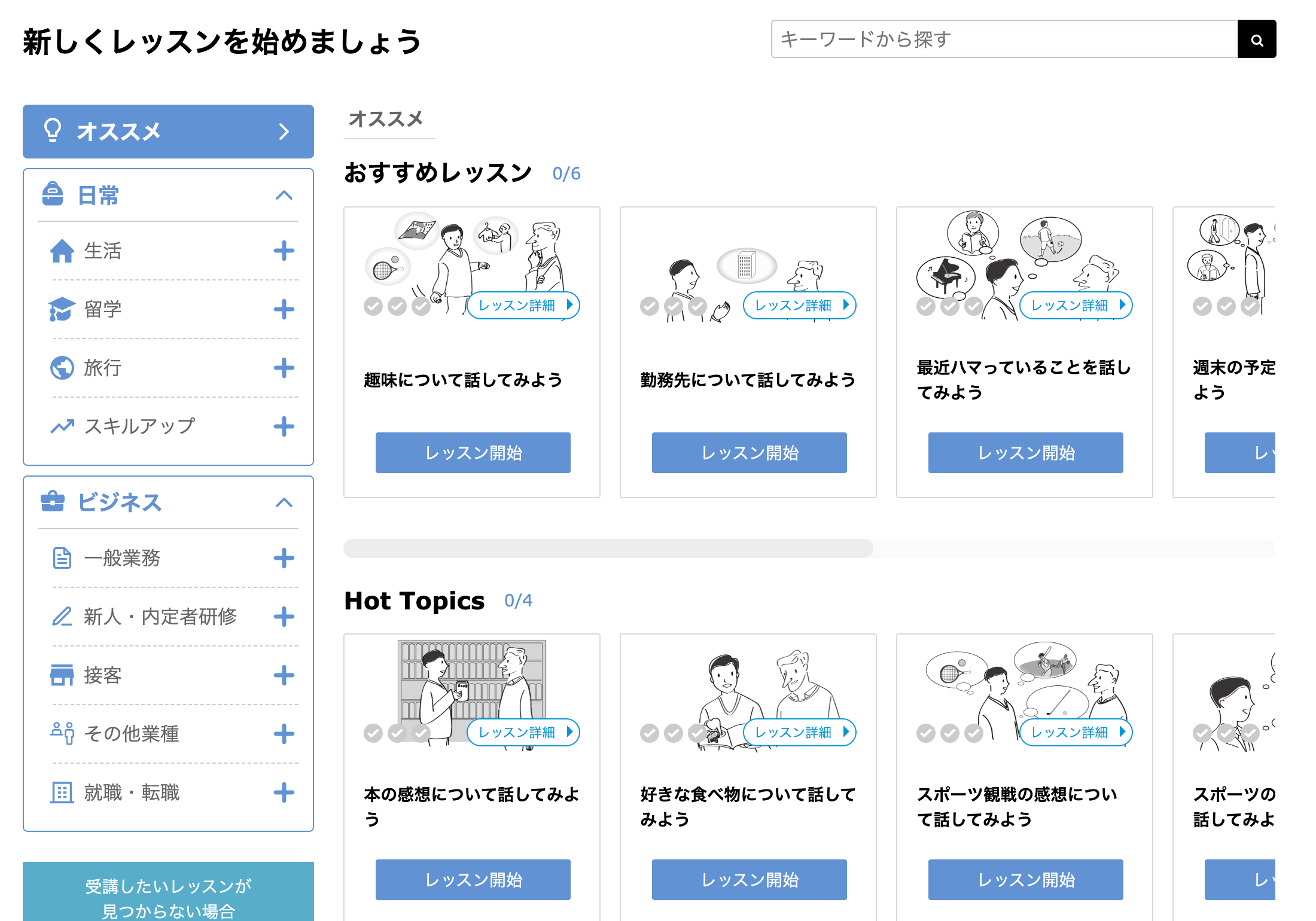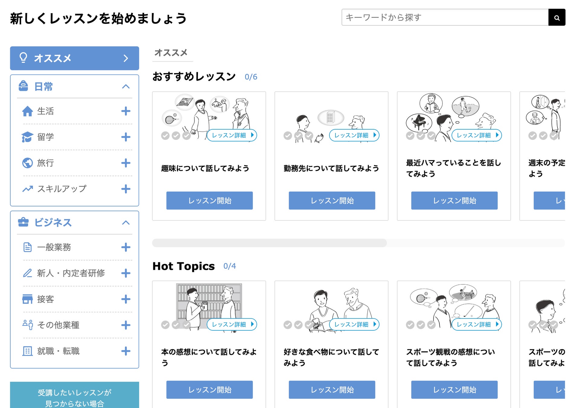 レッスントピックを探しやすく、見つけやすいものに