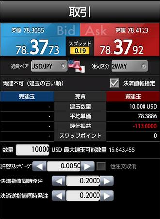 口座開設・維持費および取引手数料は無料です。本取引は元本及び利益が保証されるものではありません。本取引は、取引金額(約定代金)に対して少額の取引必要証拠金をもとに取引を行うため、取引必要証拠金に比べ多額の利益を得ることもありますが、その一方で短期間のうちに多額の損失を被る可能性があります。本取引は、通貨等の価格又は金融指標の数値の変動により損失が生ずるおそれがあり、かつその損失の額が預託した証拠金の額を上回ることがあります。法人のお客様のお取引には決済期限があり、毎週末最終営業日の取引終了時点(夏時間午前5:30、冬時間午前6:30)の15分前からお客様の保有建玉は順次強制的に決済されるため、意図せざる損失を被るおそれがあります。スワップポイントは金利情勢の変化等により変動しますので、将来にわたり保証されるものではありません。取引レートは2Way方式で買値と売値は同じでなく差があります。取引は1通貨単位からです。本取引にあたって必要な証拠金の額は取引通貨ごとに異なり、取引通貨レートに応じた取引額に対して一定の証拠金率(個人のお客様:4%(レバレッジ25倍)、法人のお客様:0.5%(レバレッジ200倍))の証拠金が必要となります。お取引を始めるに際しては、「契約締結前交付書面」等をよくお読みのうえ、取引内容や仕組み、リスク等を十分にご理解いただき、ご自身の判断にてお取引くださるようお願いいたします。