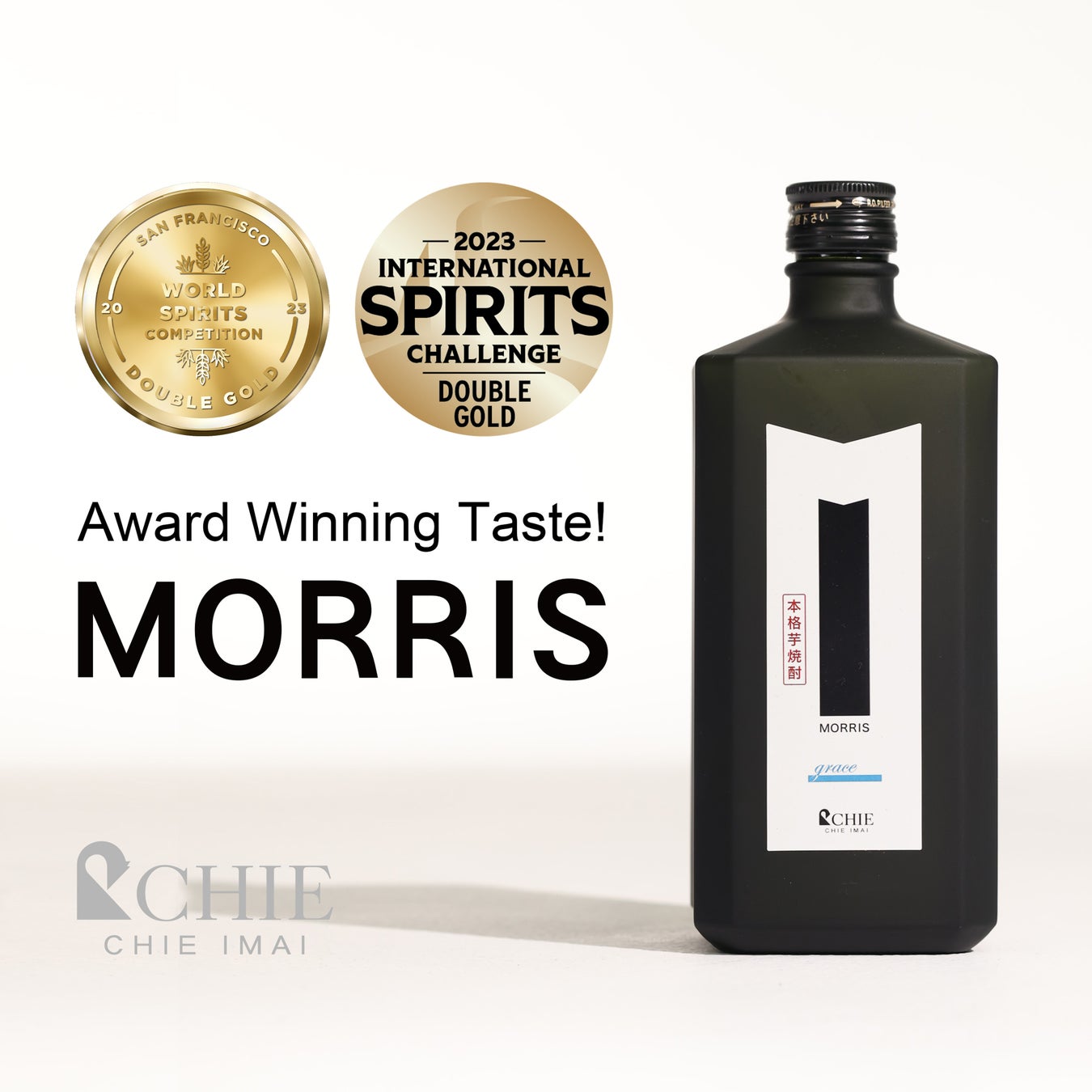 日本発ファッションブランドCHIE IMAI プロデュース 本格芋焼酎 MORRIS(モーリス)が、世界で最も権威ある二大酒類コンペティションにおいて【ダブルゴールド賞】受賞