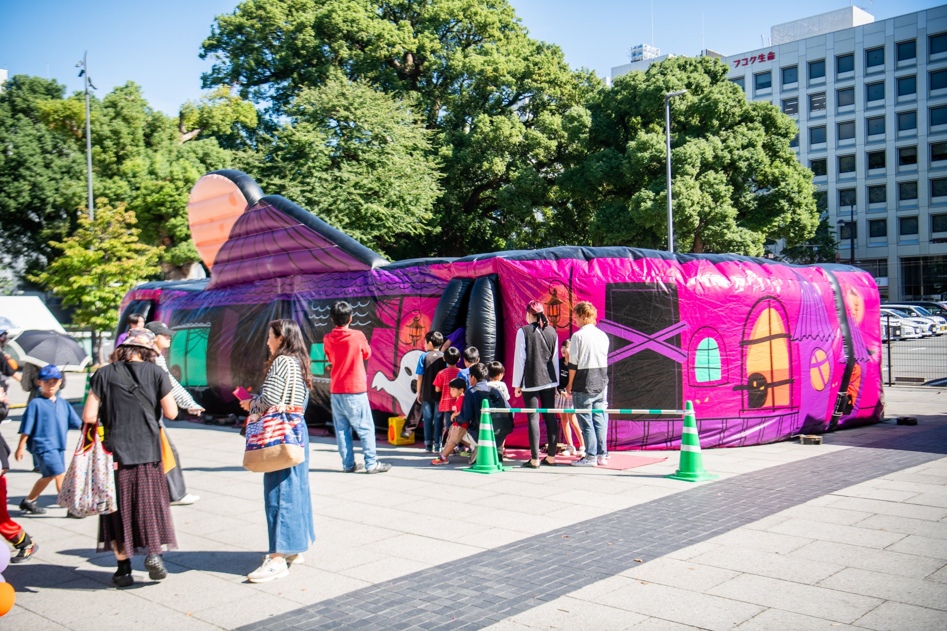 お化け屋敷やふわふわアトラクション、ハロウィン射的、そしてリアルなハロウィンメイク体験(※有料)など、子どもから大人まで一日中遊べる体験型エリア。