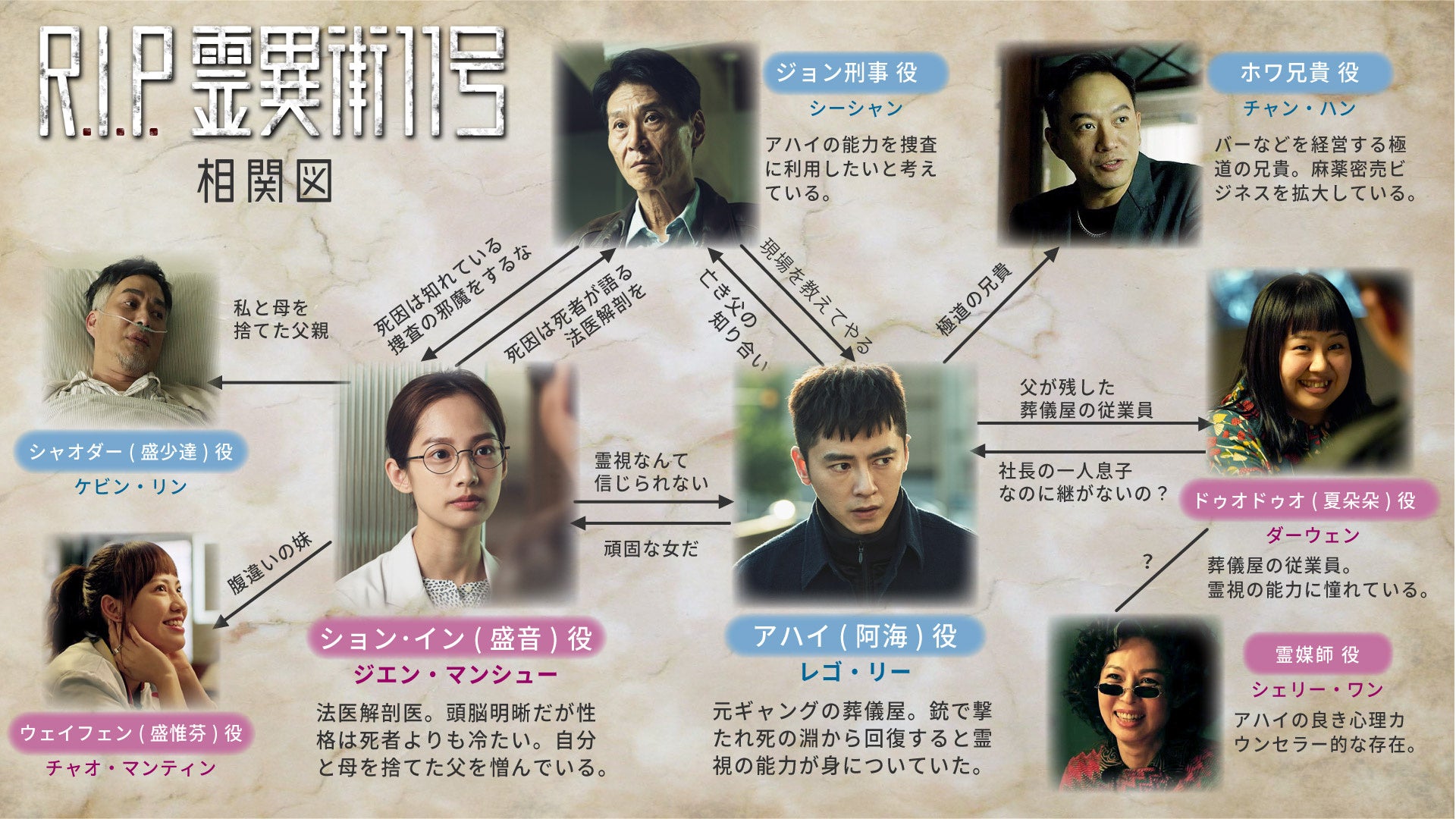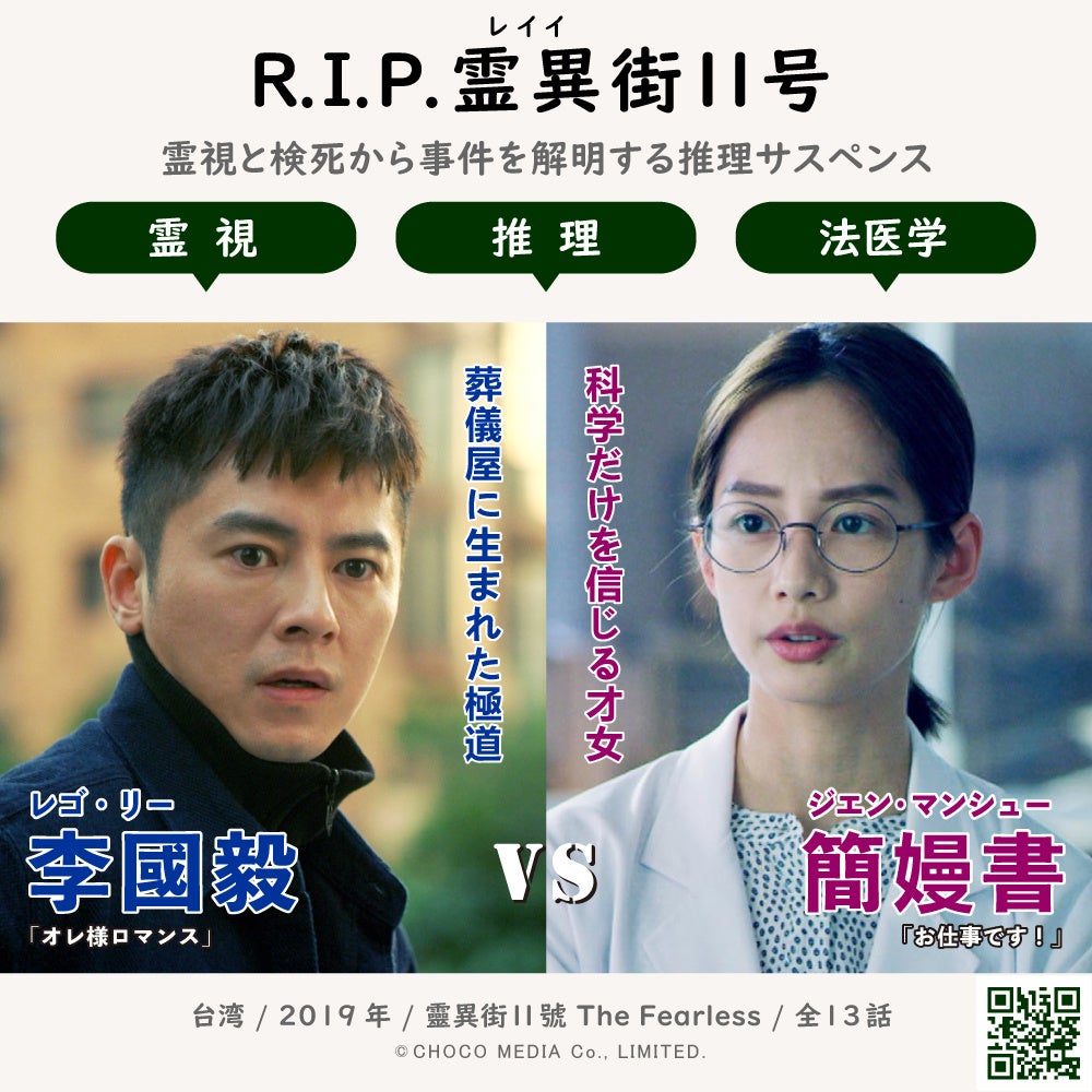 銃撃され臨死後に霊が見えるようになった葬儀屋と、科学で真実を解き明かすクールビューティーな女性監察医が、難事件を解決していく全13話の本格推理サスペンス ドラマ。極道から葬儀屋になった実話を元に書かれた小説「臨異街11號」が原作で、ご本人が葬儀屋役としてカメオ出演する話題作。報われない死を遂げた霊たちが葬儀屋に救いを求めにやってくる。同時に、その遺体は、法医学の観点から死の本質を見極められ、殺人の背後にある真相を探り出される。霊は安らかに眠れるのか!霊視と科学の力で、事件の真相を解き明かせ!