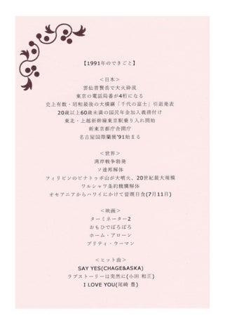 またその年のワインを買われて飲まれたご感想、その年のワインの出来、ソムリエのお薦め銘柄、出来事、流行、同い年生まれの有名人など、記念の年にまつわる様々な情報をご紹介。