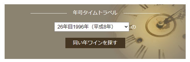 ●サイト内の人気コンテンツ『年号タイムトラベル』では同い年のワインを探すことができます。