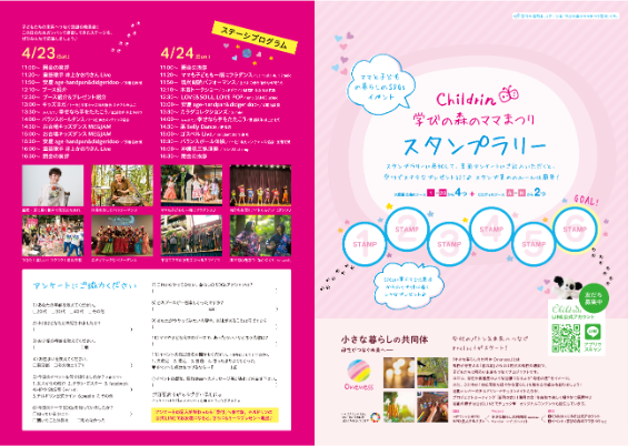 そして、森との共創を願う「学びの森のママまつり」への展開を経て、この度学びの森のママまつりはチルドリンの活動理念『凛の木』の4つの柱『森との共創・美しいエネルギー・新鮮なおやさい・コミュニケーション』を軸にさらに進化します。 また、その『コミュニケーション』においては平時から暮らしに取り入れられる『ママと子どもの暮らしのSDGs』を共有できる場づくりを目指します。