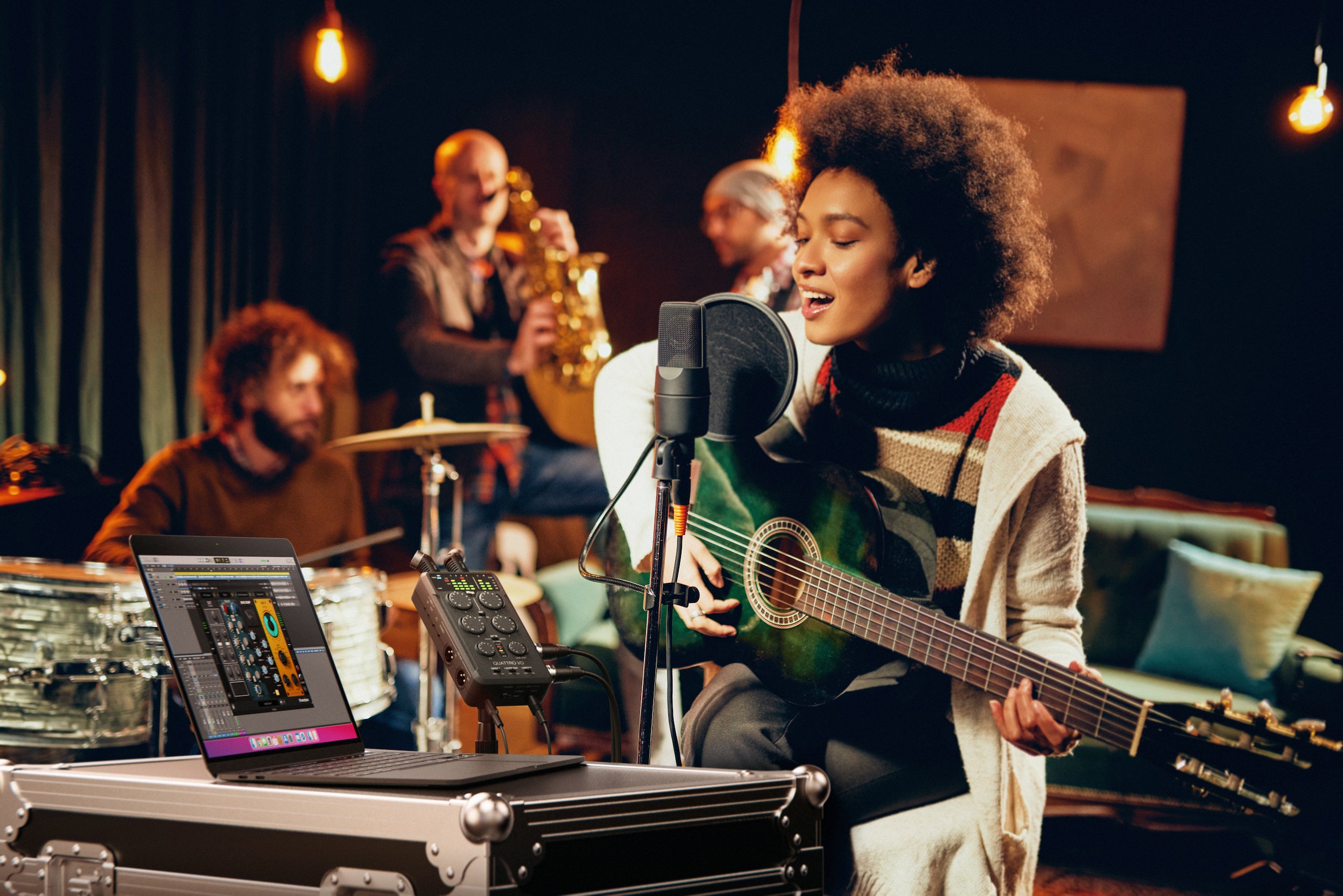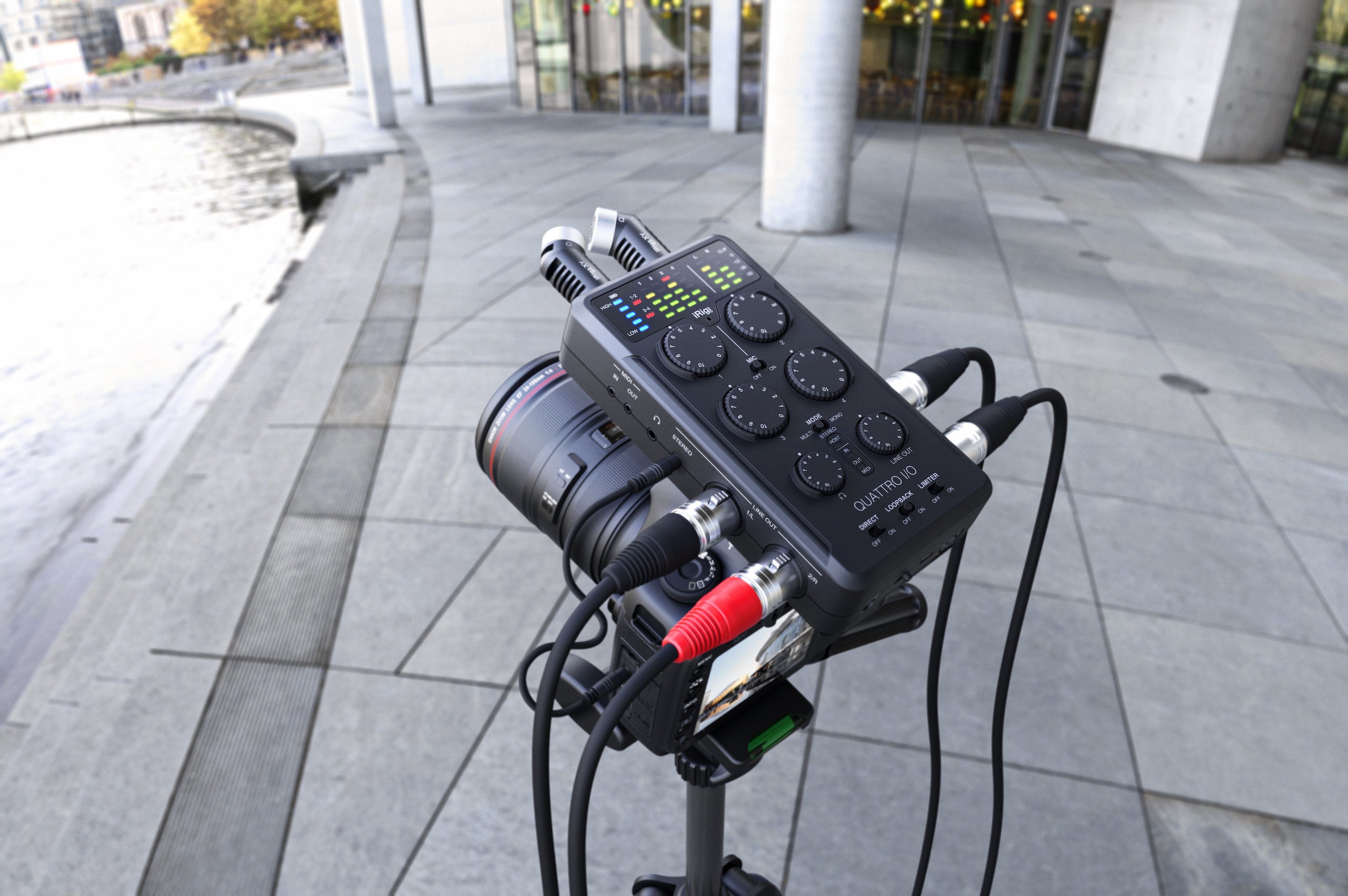高品位なマイク・プリアンプを4機搭載した、プロ仕様の4 IN/2 OUTモバイル・オーディオMIDIインターフェース。iPhone、iPad、Mac/PC、デジタル一眼カメラに対応。