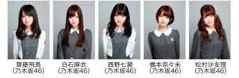 橋本奈々未(乃木坂46) / 藤井リナ / 堀田茜 / 松井愛莉 / 松村沙友理(乃木坂46) / 水沢アリー /