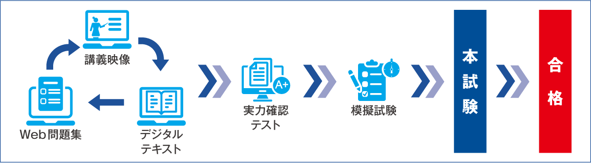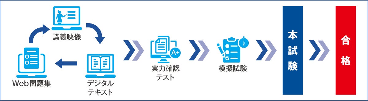 講義映像、テキストから問題集、実力テスト、個人カルテまで
