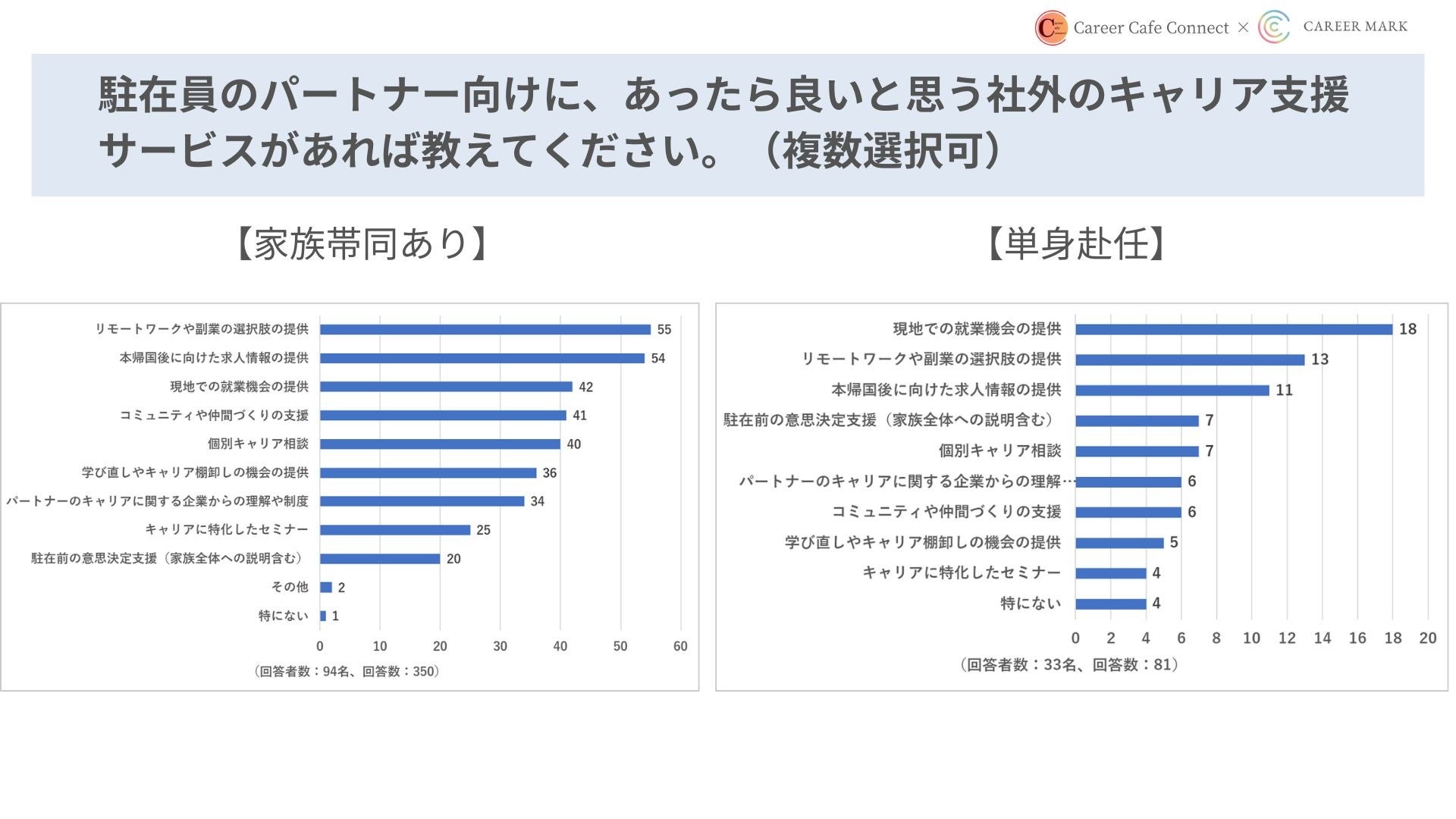 ■駐在員の過半数がパートナーに「リモートワークや副業の提供」「本帰国後に向けた求人情報の提供」「現地での就労機会」を求める