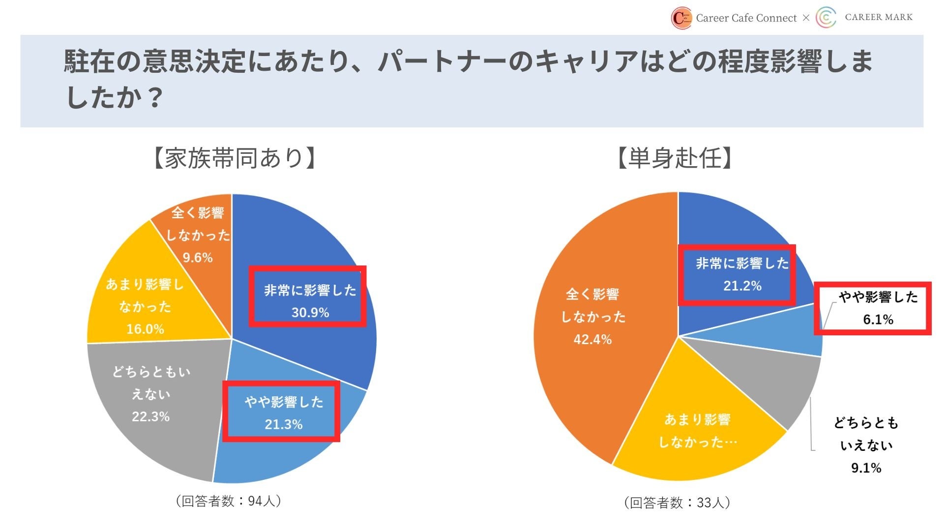 ■駐在の意思決定にあたり、過半数がパートナーのキャリアが「影響した」と回答