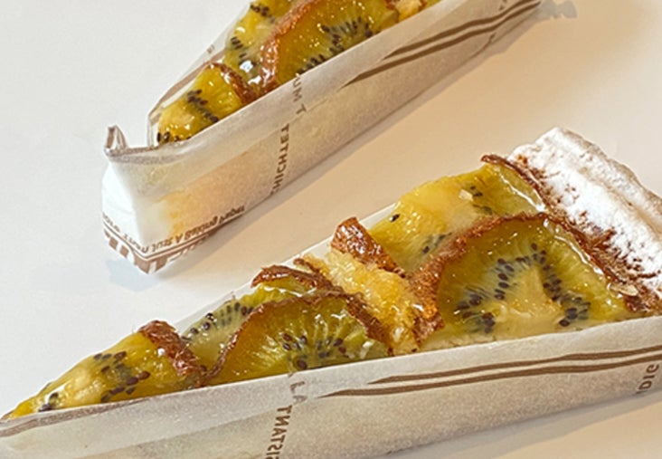 和歌山・紀ノ川産のキウイを皮ごと、アーモンドクリームとともに焼き上げたベイクドタルト。