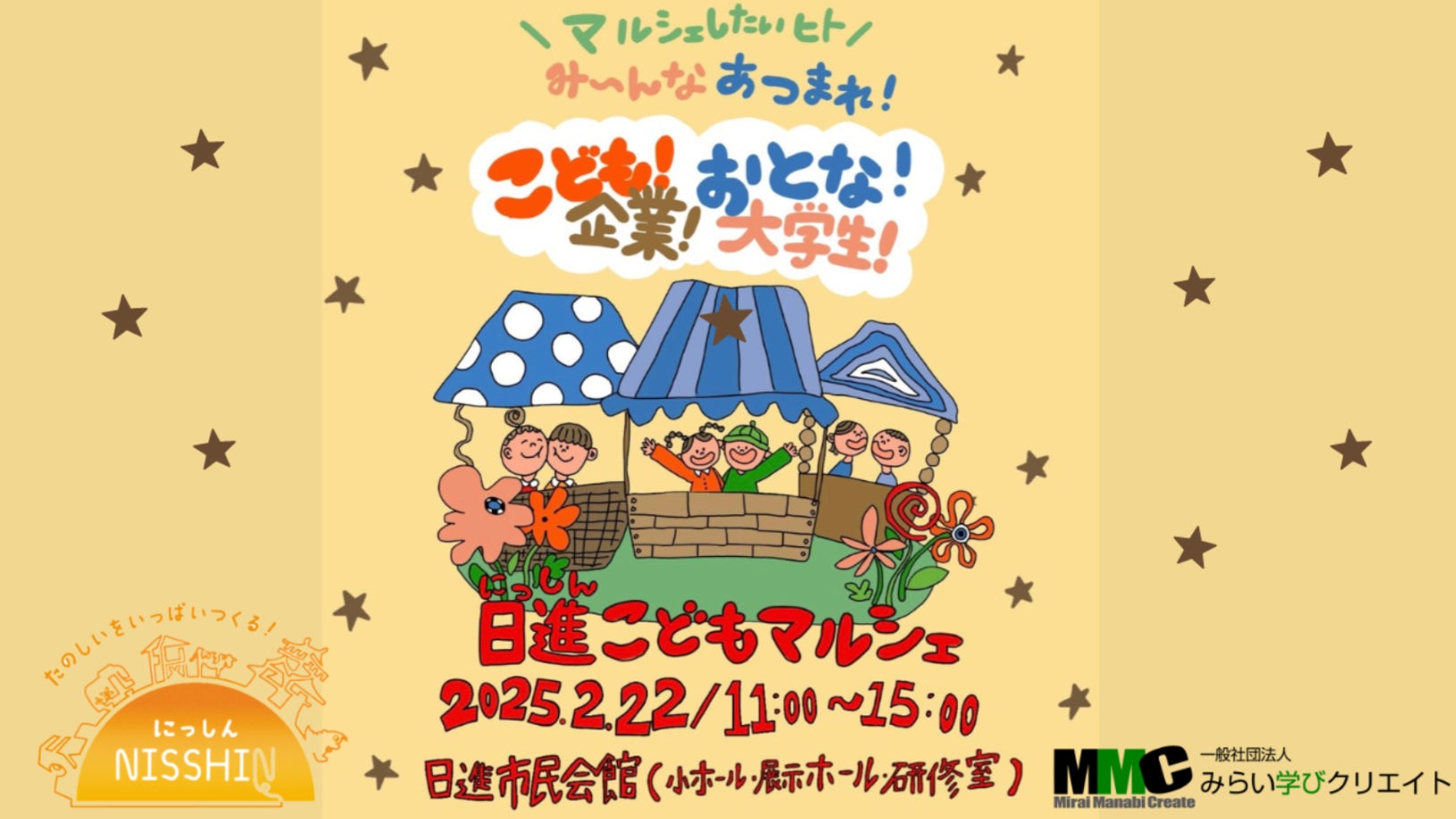 子どもたちが、半年間かけて一生懸命準備します!是非多くの方にご来場いただき、子どもたちが作り上げる「日進こどもマルシェ」を一緒に盛り上げてください!まだ先のイベントになりますが、お友達やご家族と一緒にご参加ください。皆様のご来場を心からお待ちしております!