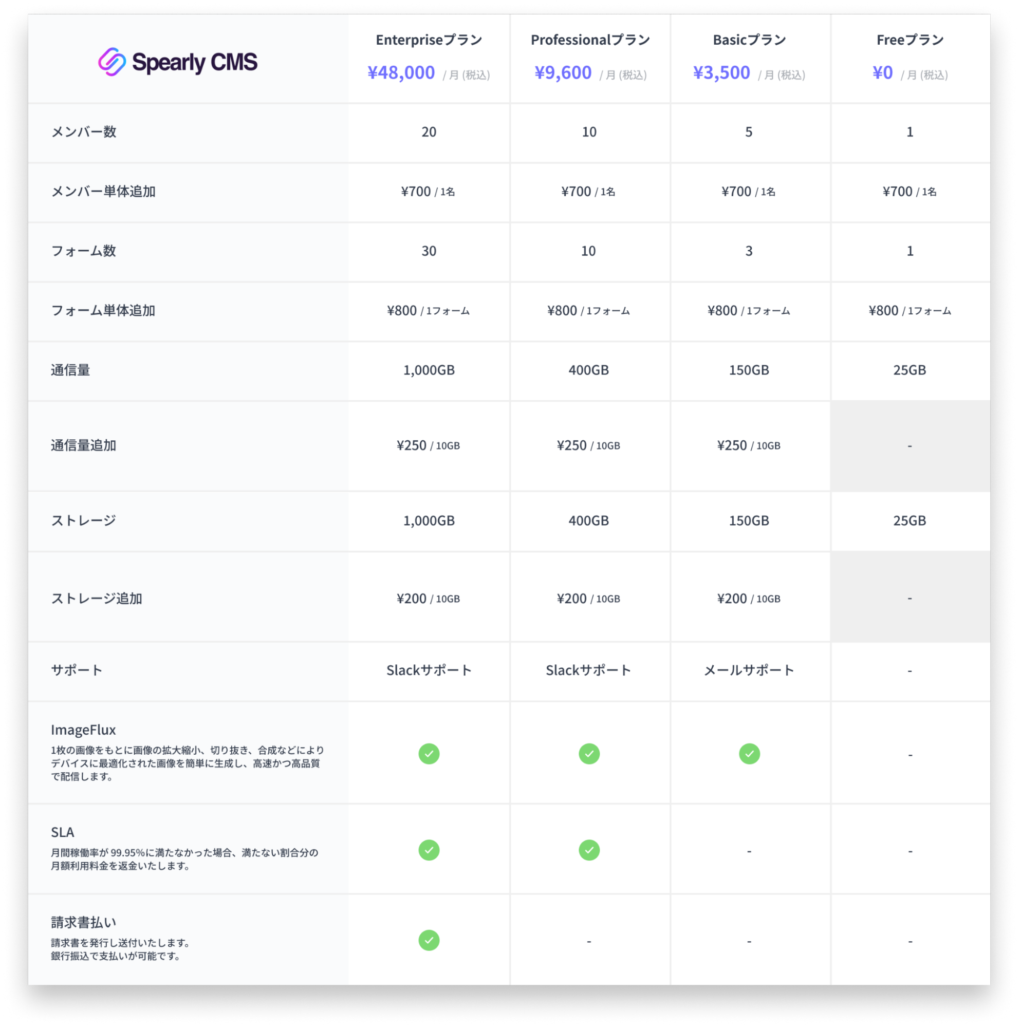 ベーシック以上のプランで「ImageFlux」が「Spearly CMS」の標準オプションに