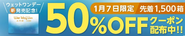 <1月7日限定、先着1,500箱『wet1day UV+(ウェットワンデー)』50%OFFキャンペーン概要>