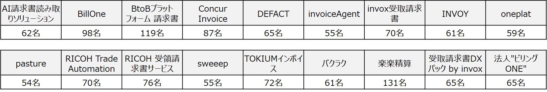 調査対象ツール :18ツール(「請求書受領ツール」Google検索結果より抽出)