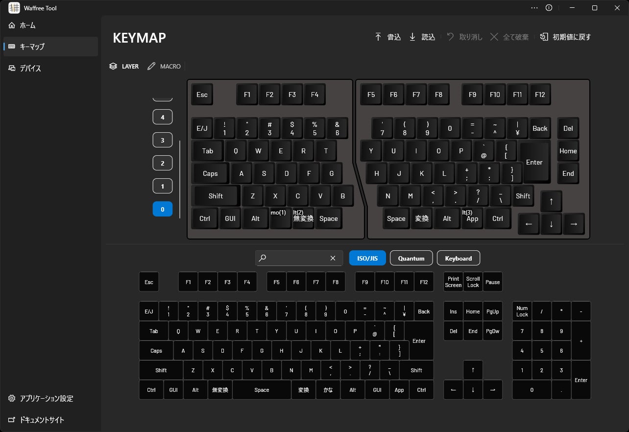 WaffreeTool(Windows/macOS対応)を使えば、キーマップを思うままに設定でき、レイヤー機能やマクロ機能を使えば、さらに便利にお使いいただけます。