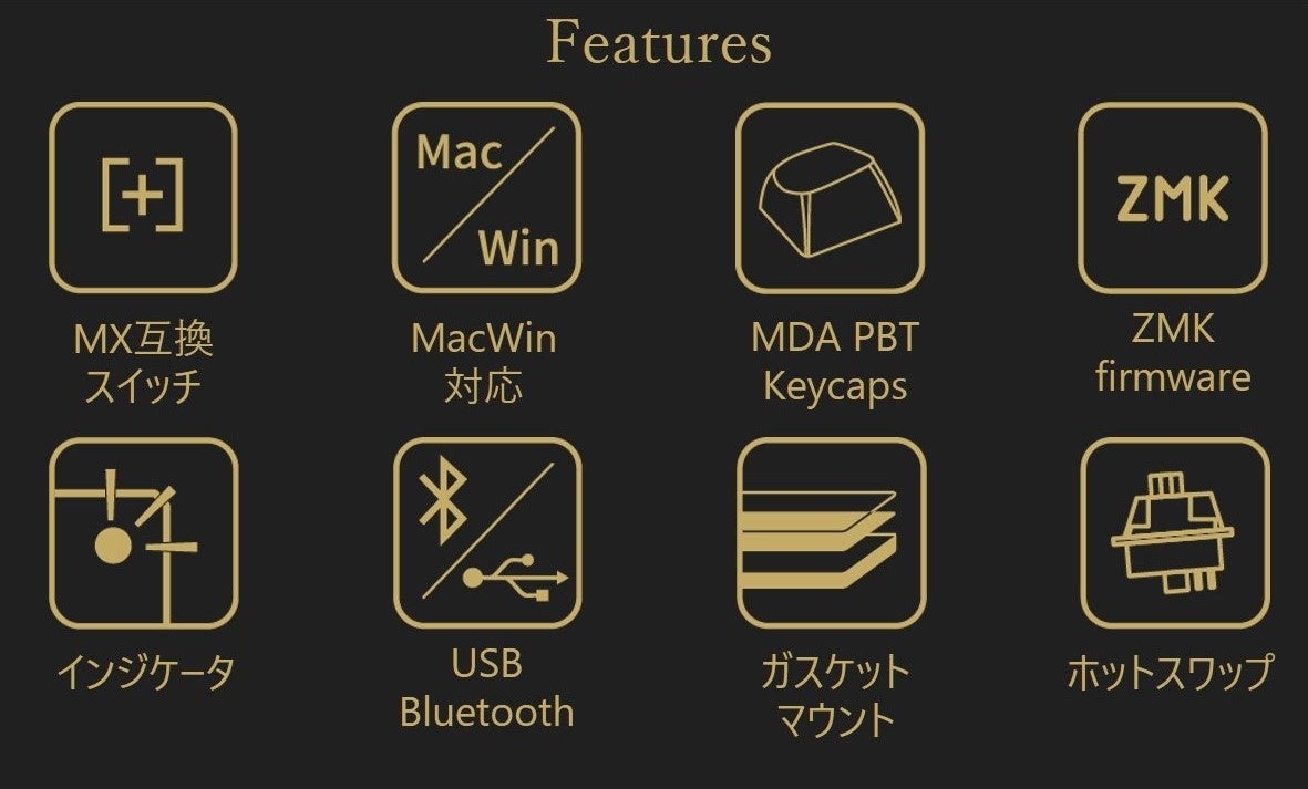 シックなデザイン性とJIS/USレイアウトの両方でお使いいただけるように、シンプルなモノレジェンドでデザインされています。