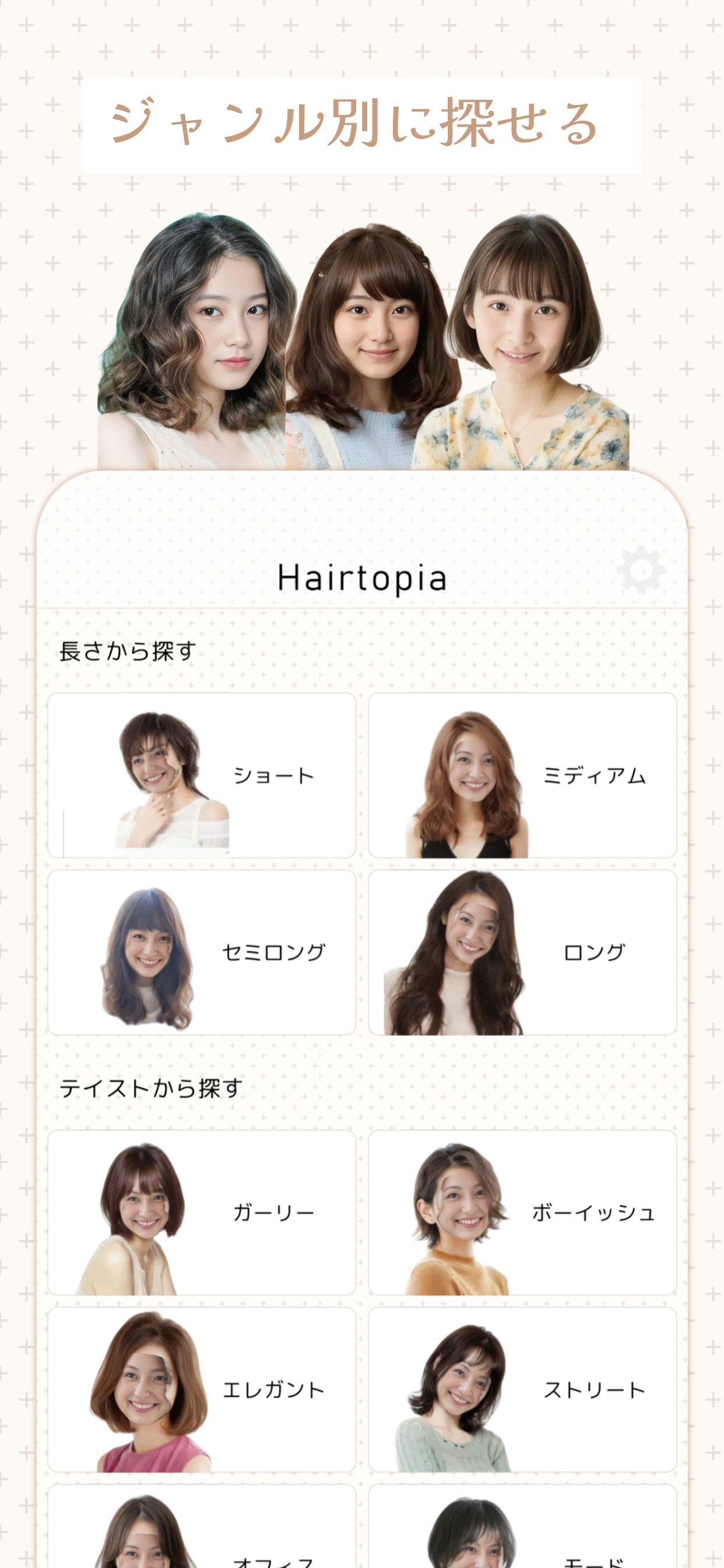 髪型のジャンル別にたくさんたくさんの型を探せる