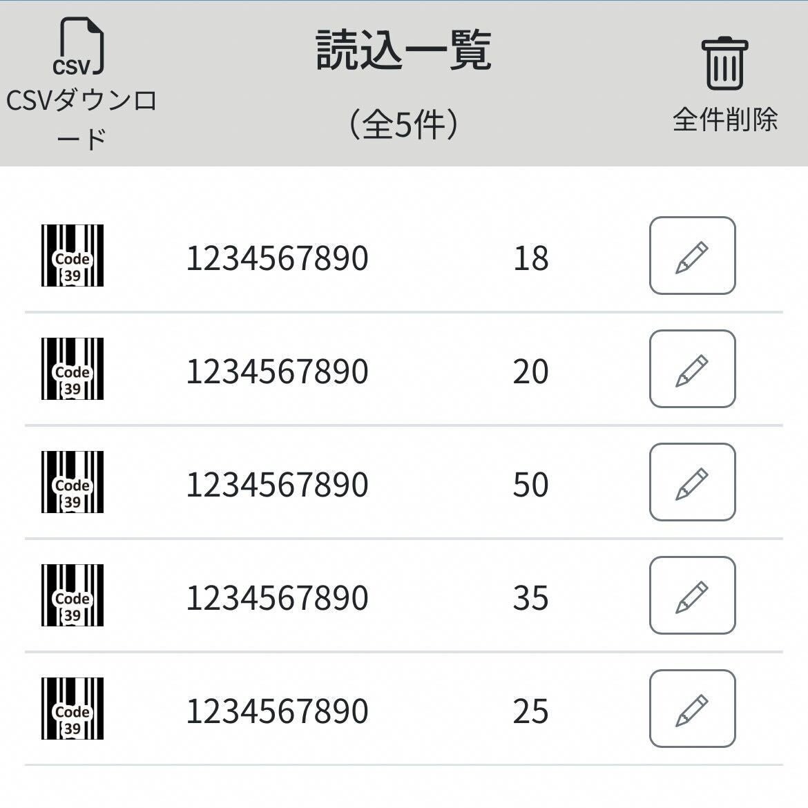 3.一覧からバーコードリーダで記録した商品の確認や編集、削除することができます。