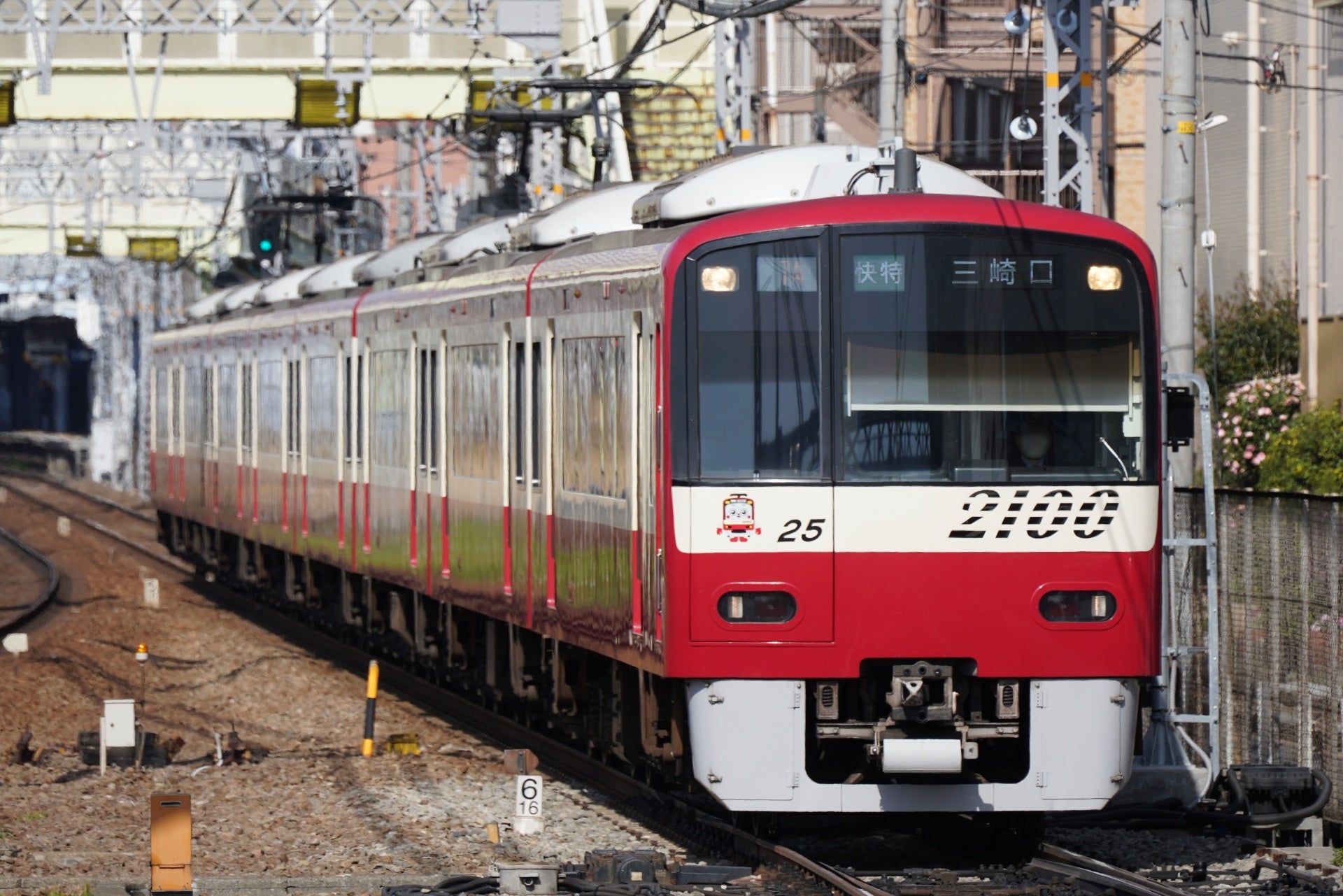 「京急2100形」は、京急のフラッグシップ車両と位置づけられ、1998年に登場した、主に快特や特急に使用されている車両です。三崎方面へのレジャー需要もあることから、2扉オールクロスシート車両となっています。登場時、ドイツのシーメンス社製造のVVVFインバーター(通称ドレミファインバーター)を搭載し、「歌う電車」として一躍有名になりました。(更新工事により、現在は国産品に置換)