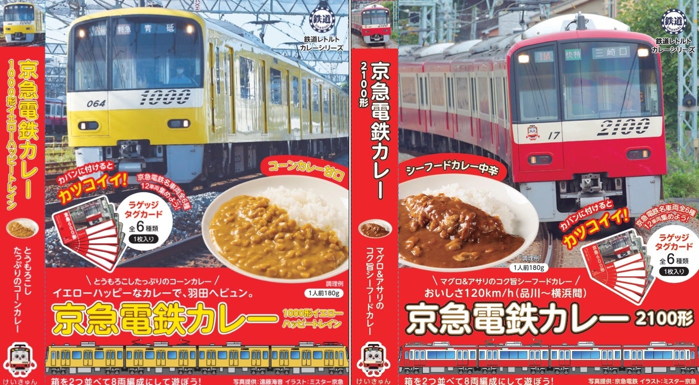 「京急電鉄」の魅力を詰め込んだレトルトカレーが登場! 京急2100形×シーフードカレーと京急1000形イエローハッピートレイン×コーンカレーの2種類の「京急電鉄カレー」を発売!