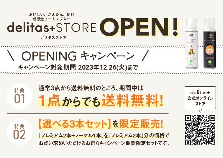 より多くの方にお手に取っていただけるように、公式オンラインショップ「delitas+ STORE」では12月26日までの期間限定で「全品送料無料」のオープンキャンペーンを開催します。