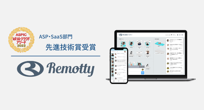 仮想オフィスRemottyが『ASPIC IoT・AI・クラウドアワード2022』 基幹業務系ASP・SaaS部門 にて先進技術賞を受賞しました
