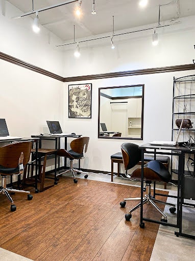 充実した環境:基本的にマンツーマンで指導し、ミドルエンドからハイエンドパソコン、Photoshop、Illustrator、CGソフトなどが利用できる環境を提供します。