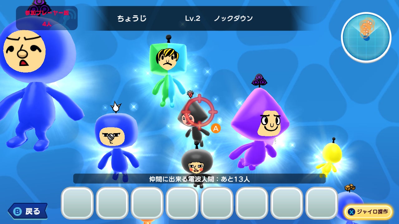 みんなでキャッチは、近くでプレイしている最大4人のプレイヤーと一緒に行う電波人間キャッチです。参加人数が多いほど、レアな電波人間を見つけやすくなります。