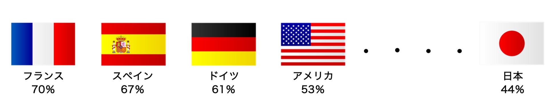 エシロール社による遠近両用レンズの普及率調査では、フランスは70%、アメリカが53%、そして日本は44%という結果になりました。普及率には、環境、社会的文化的背景、眼鏡業界の取り組みなども関係していますが、老眼人口が世界No.1、デジタル社会の加速、“見る”ことへの具体的な不安、があるにも関わらず、日本は欧米と比較すると老眼対策である遠近両用レンズの普及が遅れをとっているのが現状です。