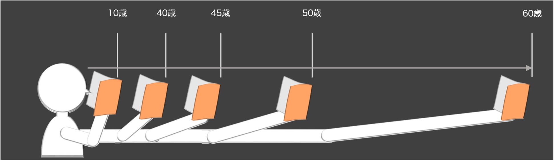 10歳では、十分な調節力を有しているので眼前8cmくらいまでよく見えますが、その機能が劣化するため20歳ではその距離は約11cm、30歳で約14cm。そして40歳で約22cmまで遠ざかります。スマートフォンや読書では眼前から手元まで20~30cmの距離で見ているため、この段階ではあまり不便を感じません。