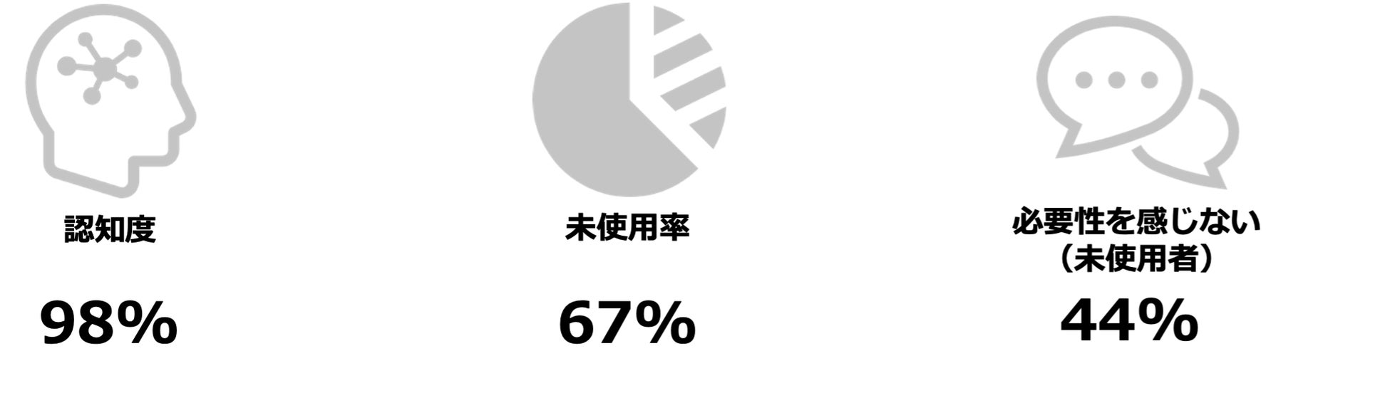 仕事や生活で“見る”ことの悩みが多く不便や負担を感じているにもかかわらず未使用率が高いということは、老眼への具体的な対策をとっていないと考えられます。