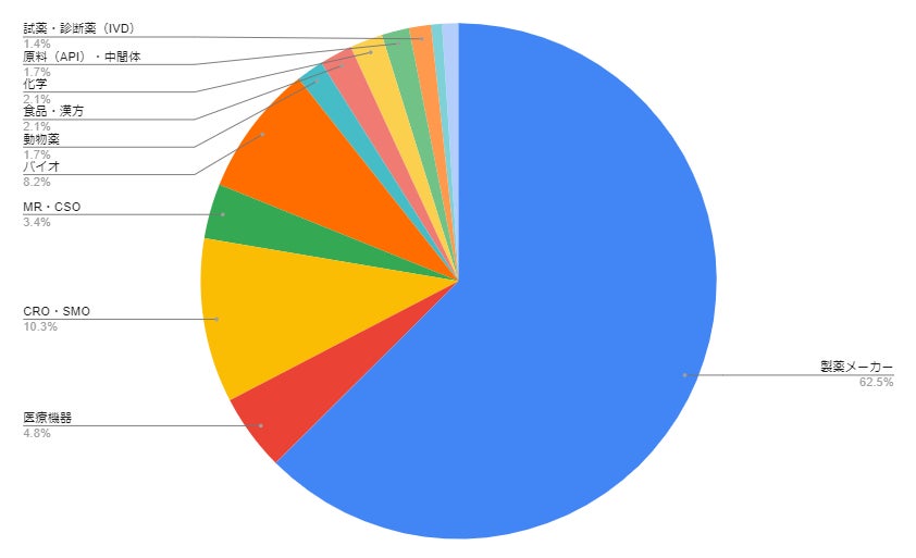 実績としては外資内資問わず、大手製薬メーカーから中堅製薬メーカーやCRO・SMO・CSOからバイオベンチャーに至るまでご紹介、ご入社の実績がございます。