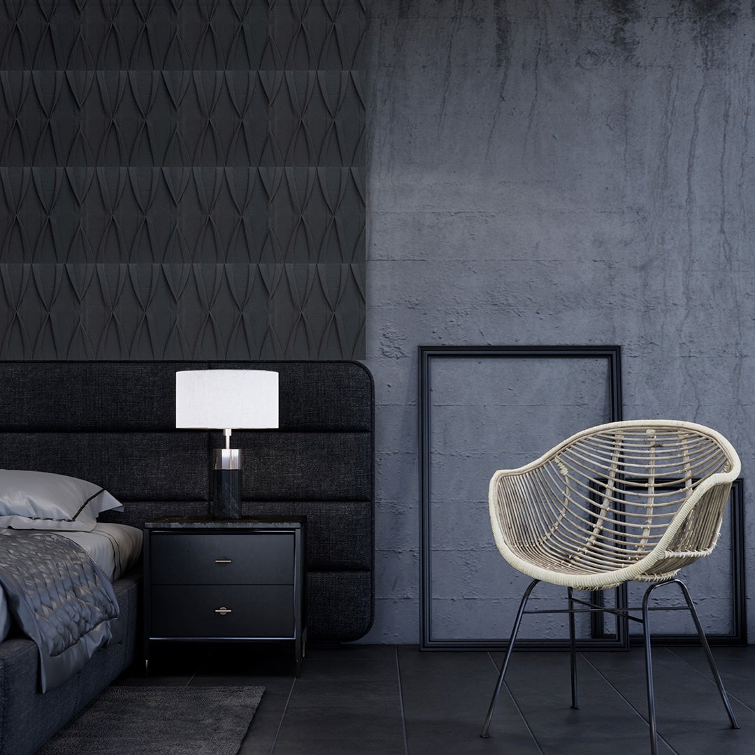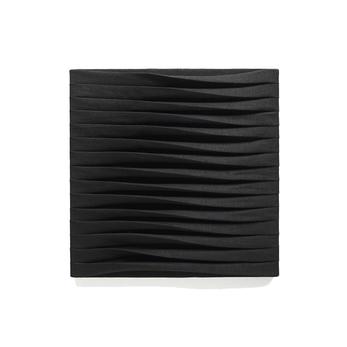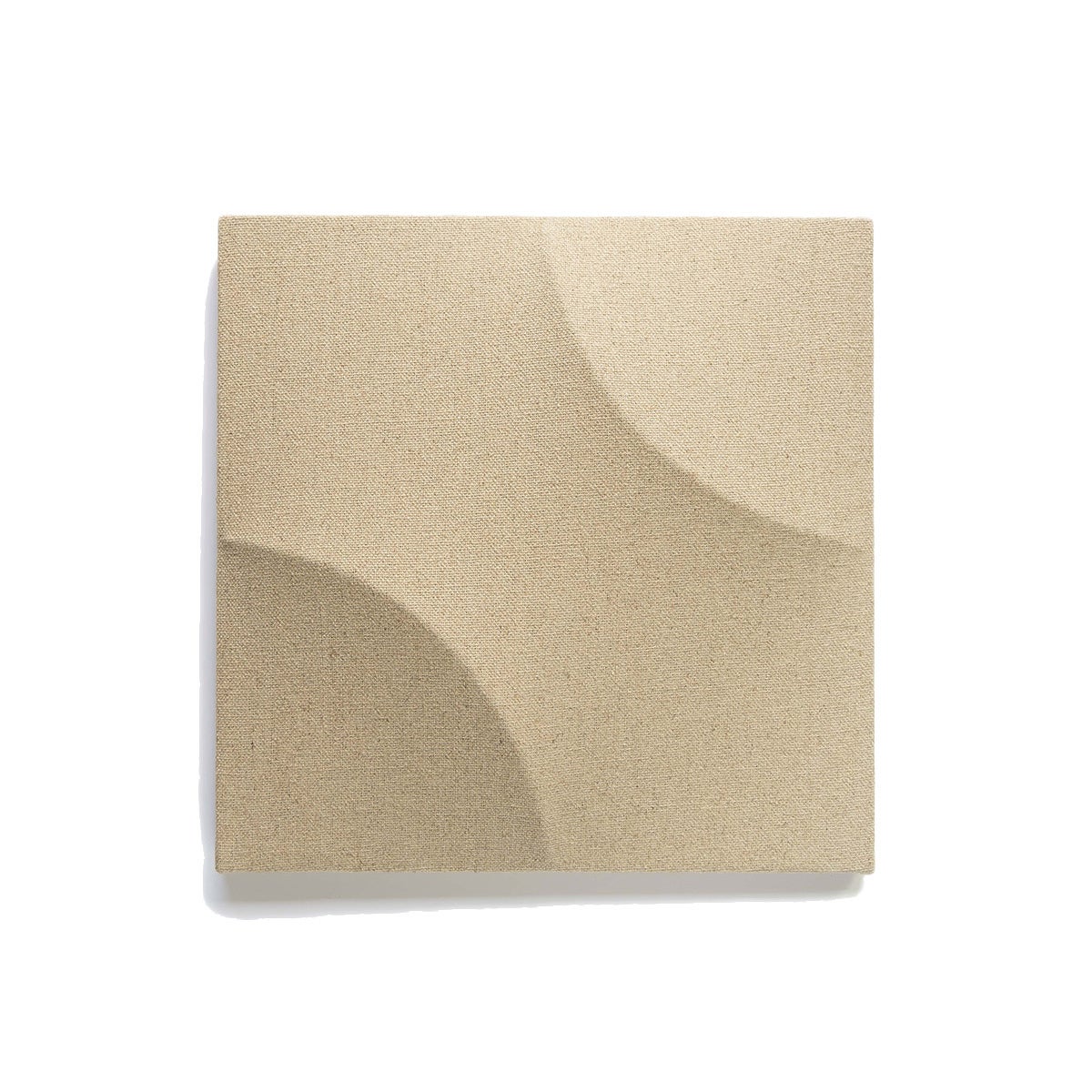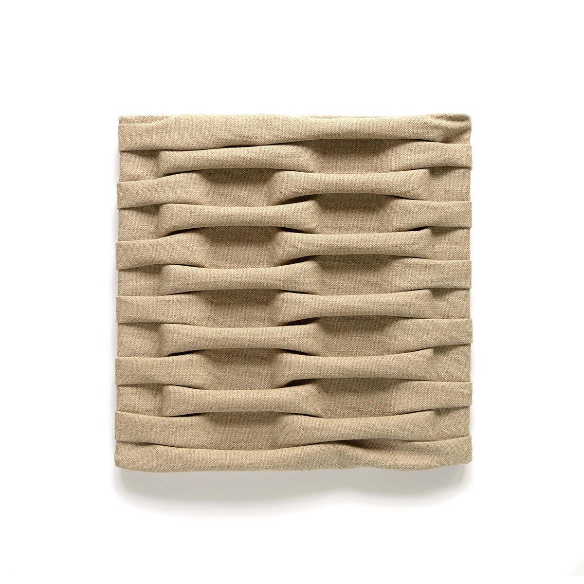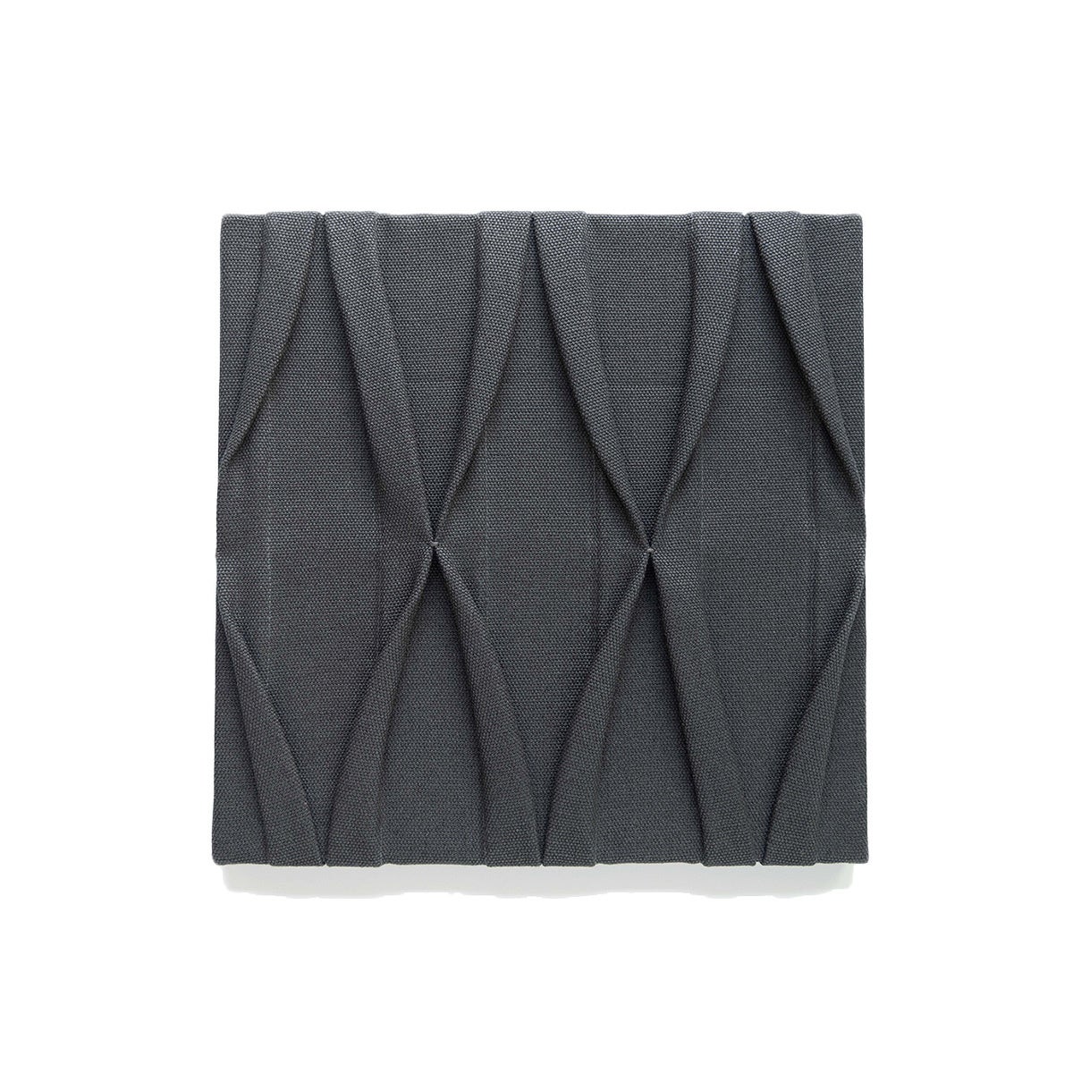 ストライプ状にタッキングされたファブリックをねじることで生み出される緩やかな曲線。パネルの向きを変えることで、光を取り込み、その陰影が上昇する動きやさざ波のような流れなどを連想させます。