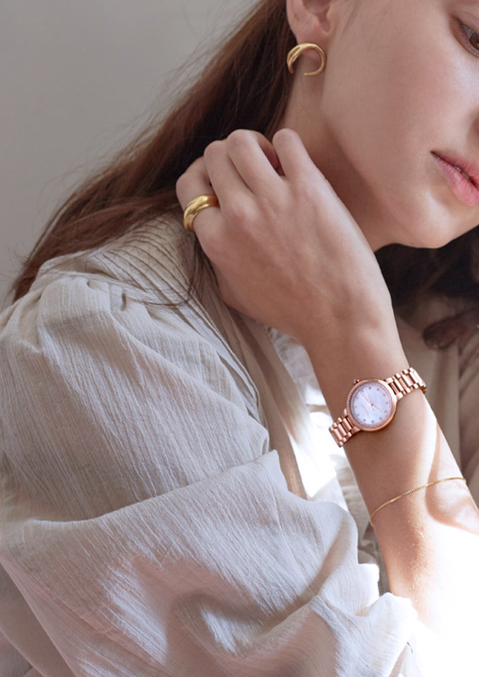 ラグジュアリーな文字盤デザインは手元を華やかに、日常を照らします。