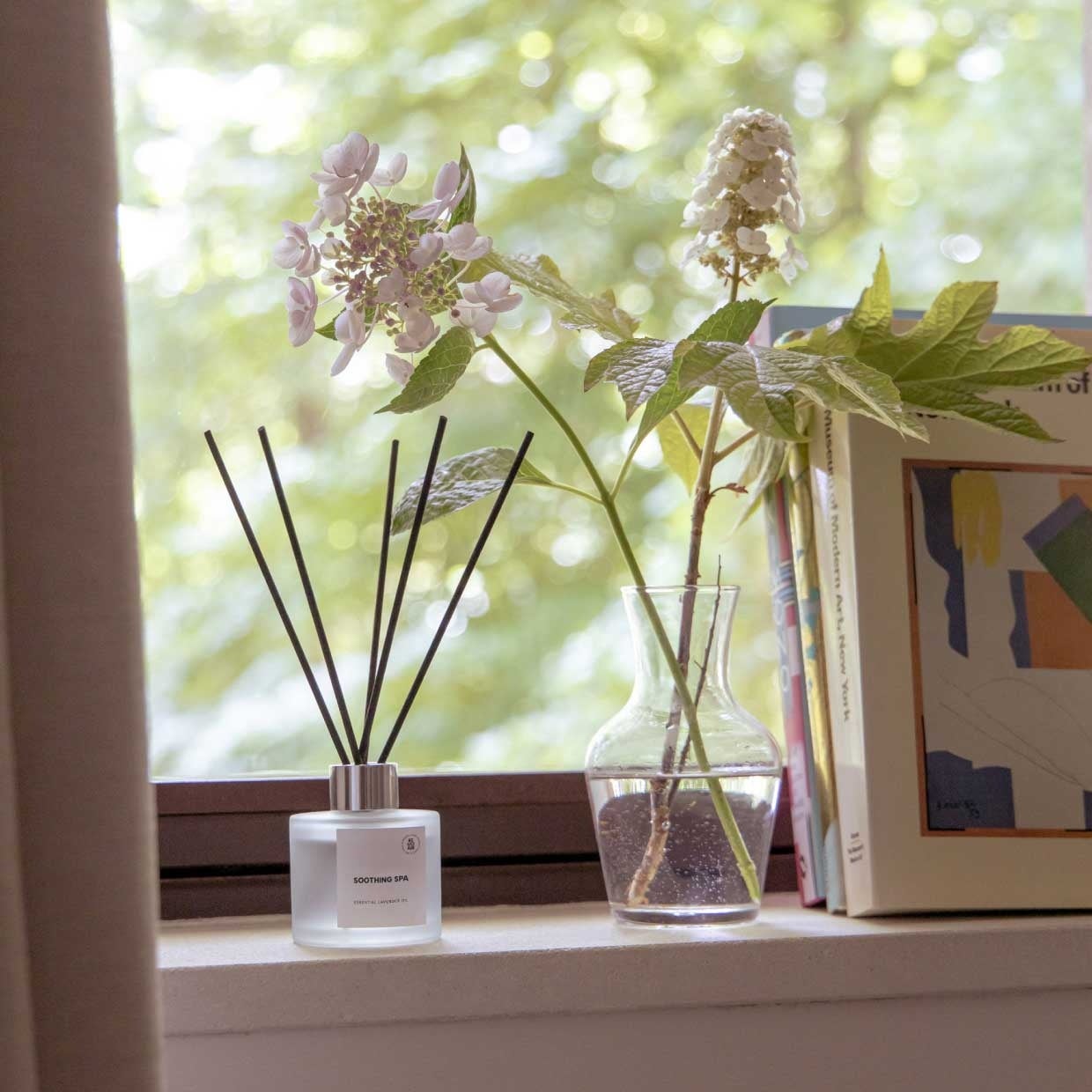 ひまわり油と菜種油をベースに作られた、環境に優しく持続可能なオイルから作られたリードディフューザー。
