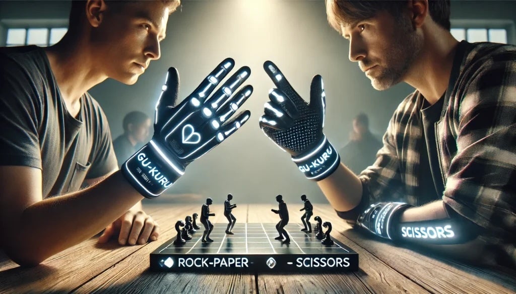 ジャンケンの勝率を極限まで高めるために設計された高性能グローブです。グー、チョキ、パー、次に何が来るのかを、最新の量子コンピューターによるAI予測技術が対戦相手の手をリアルタイムで予測しあなたの手を動かします。
