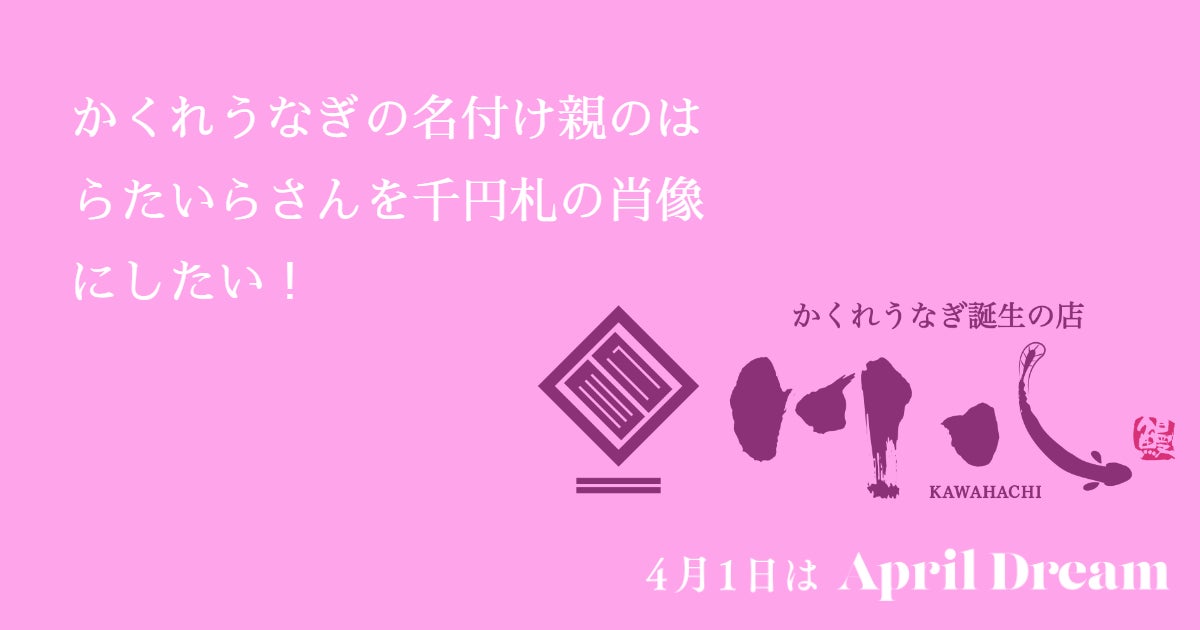 当社は、4月1日を夢を発信する日にしようとするApril Dreamに賛同しています。このプレスリリースは「株式会社 川八」の夢です。