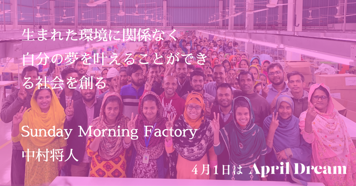 当社は、4月1日を夢を発信する日にしようとするApril Dreamに賛同しています。このプレスリリースは「Sunday Morning Factory株式会社」の夢です。