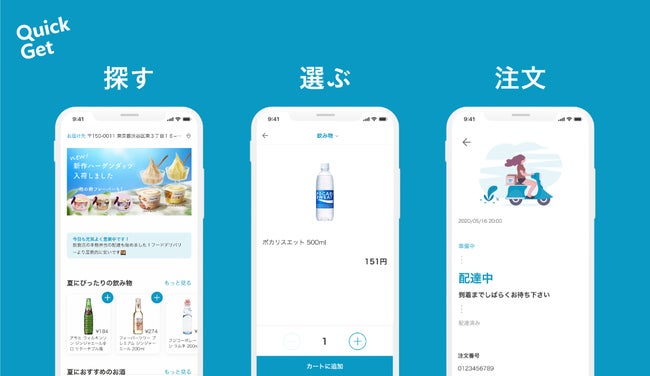 QuickGetでは、今後は都内を中心に配送可能エリアの大幅な拡大を計画しております。また、取り扱い商品についてもさらなる拡充を目指し、今欲しいものが揃っている事はもちろん、新たな商品との出会いを提供できる場へとも進化していきます。商品ラインナップ、配送体験、アプリ体験などの向上を通じて、リアルな小売ではできないデジタル時代ならではの新しい小売体験を実現していきます。