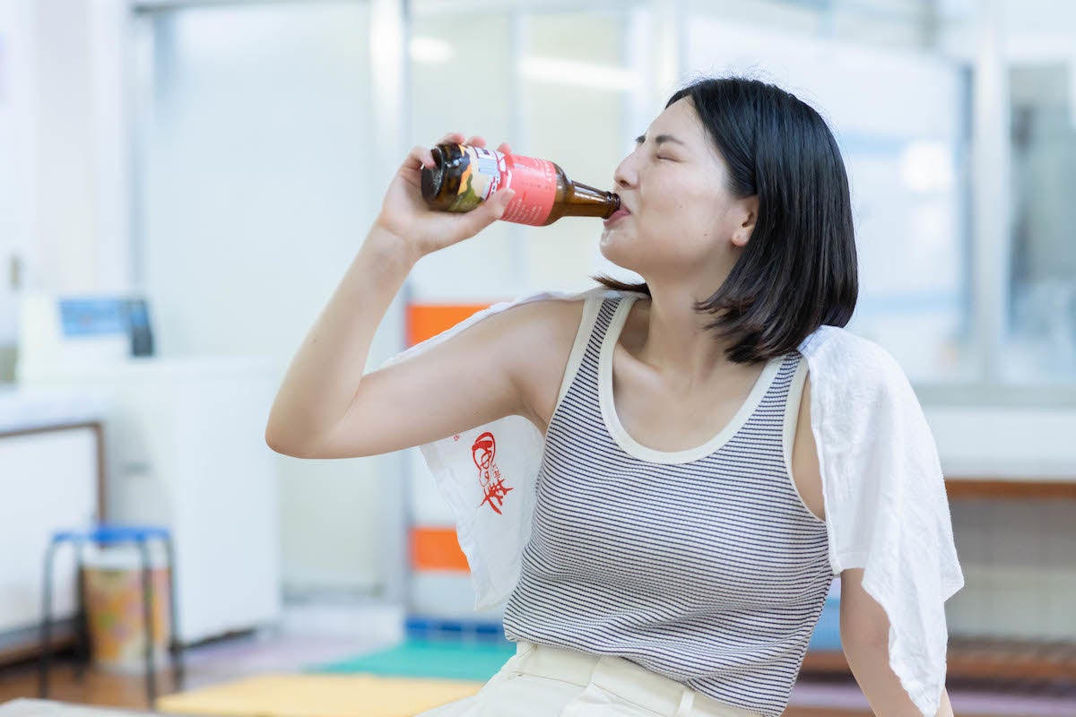 夏に向けた新商品のコンセプトは “湯上がりに飲むと最高に整う”。岩淵町のアイコンであり、戦前から営業している銭湯「岩の湯」をモチーフにラベルをデザインしました。