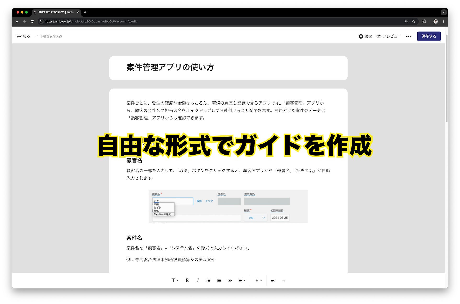 Runbookの操作支援により、ITに不慣れな方でも安心してkintoneをお使いいただけます。