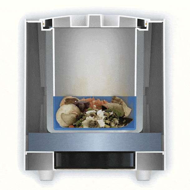 生ゴミ専用冷蔵庫ezencoolは生ゴミを-10℃で冷却することでイヤなニオイの発生を防ぎ清潔で整ったキッチンを実現します。