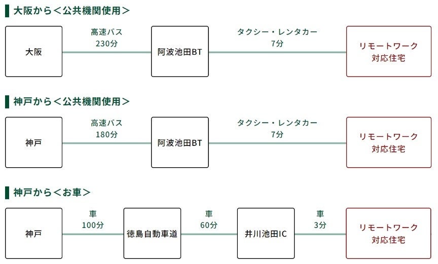 三好市リモートワーク対応住宅(徳島県三好市池田町)は、三好市が整備したワークスペースを備えた中長期滞在型住宅です。この施設を拠点に親子の時間をゆったり過ごしたり、親はリモートで仕事をし、子どもは保育士資格を有する遊びのインストラクターとともに豊かな自然や地域との交流をして過ごすなど、親子が楽しめる夏休みプランを提案します。