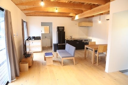 単身者向け住宅4棟とファミリー・チーム向け住宅が4棟、それにお試し住宅とシェアオフィス棟からなります。各棟にはベッドやダイニングセットなどの家具、電子レンジや冷蔵庫、炊飯器、全自動洗濯機など生活に必要となる基本的な設備、機器等を揃えています。また全室無線LAN(Wi-Fi)設備も完備しています。