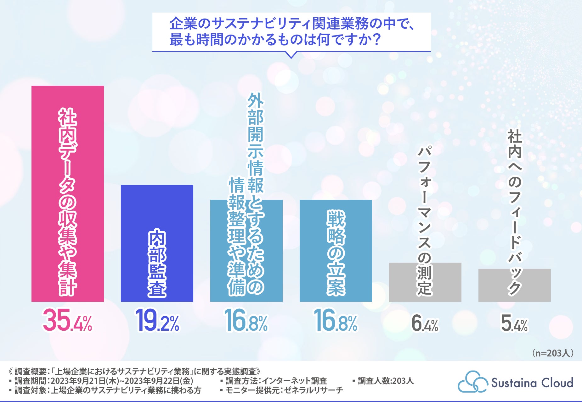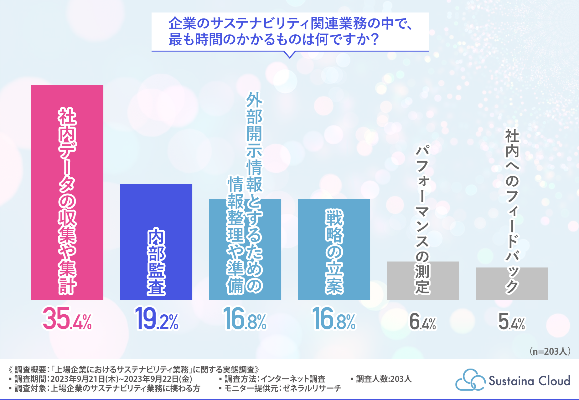 サステナビリティ業務の中で比較的時間がかかるのは、社内データの収集や集計だということがわかりました。