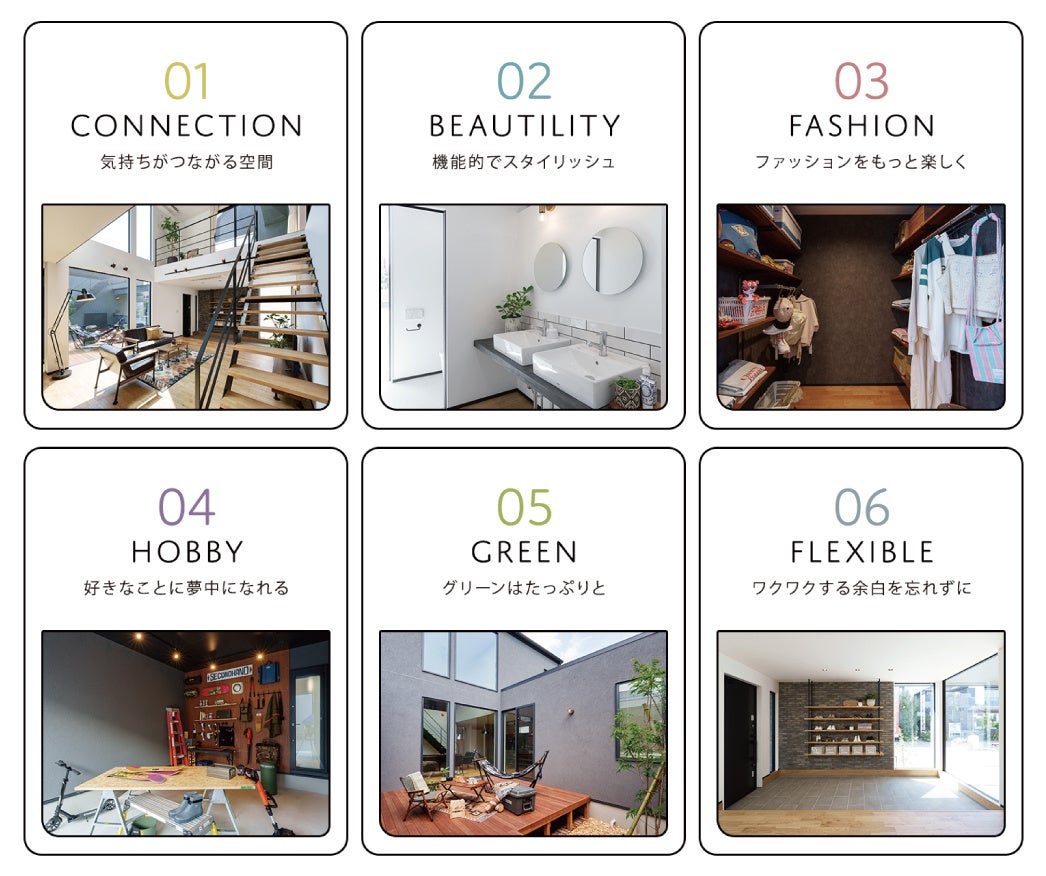 「わたしに、にあう家」をテーマとして、住むだけの器ではなく、住む人が居るだけでワクワクするような空間づくりを目指しました。既存の家づくりの型にはまらず、柔軟に、欲張りに、そしてちょっとユニークに。スタイルエディットブランドとしてniko and ... が培った編集力を活かして、住む人の気持ちとライフスタイルに寄り添い、家族との時間や趣味、そして何気ない日常も、欲張りに楽しめる遊び心のある住まいが体感できるモデルハウスになっております。
