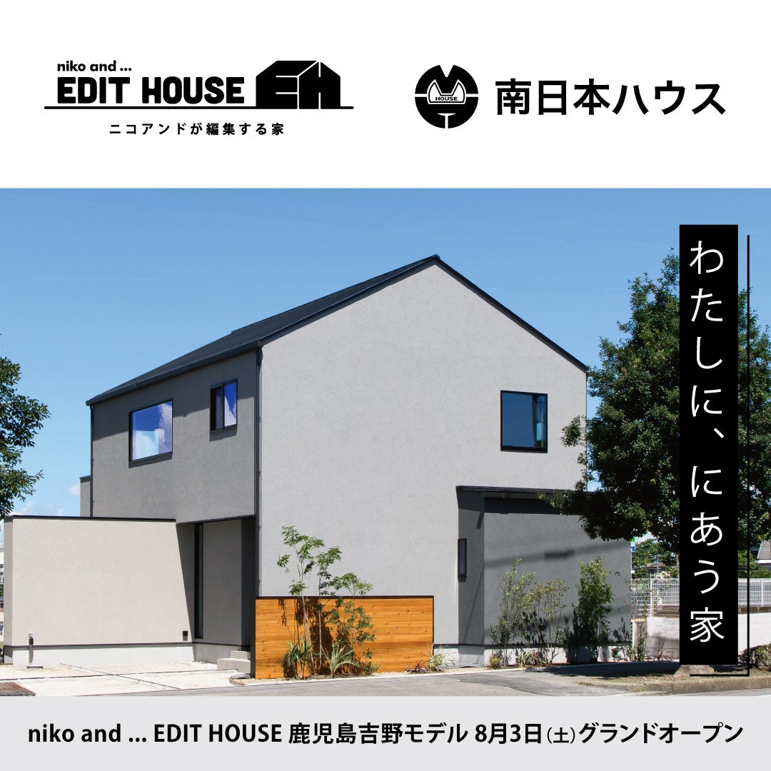 南日本ハウス株式会社(本社:鹿児島県鹿児島市、代表取締役社長:元山 豊二、以下「当社」)は株式会社アダストリア(本部:東京都渋谷区、代表取締役社長:木村 治、以下「アダストリア」)のスタイルエディトリアルブランド「niko and ... (ニコアンド)」がプロデュースし、株式会社リブサービスとIPライセンス展開する戸建商品「niko and ... EDIT HOUSE(ニコアンドエディットハウス)」のモデルハウスを鹿児島市吉野町に出店し、2024年8月3日に営業を開始したことをお知らせいたします。