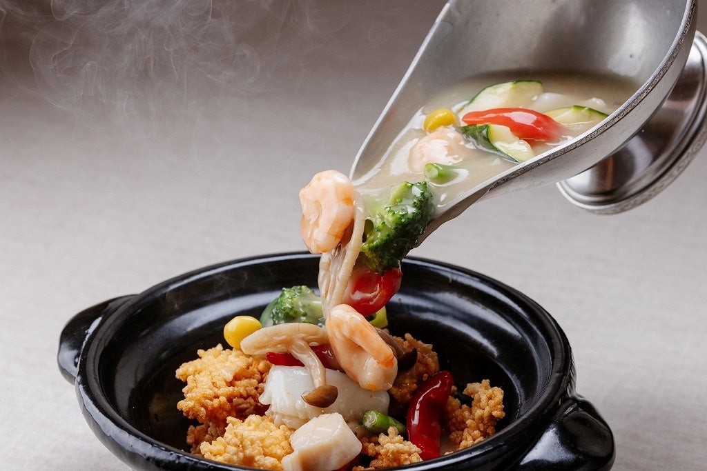 当店の自慢は丸鶏や豚ガラなどをじっくり煮出し、金華ハムや干し貝柱などの高級食材を加えた「上湯(シャンタン)スープ」、豚骨や豚足を使用した濃厚な旨味の「白湯(パイタン)スープ」です。スープを使った海鮮あんかけおこげや小籠包、フカヒレの姿蒸しなど、お店自慢の逸品をお楽しみいただけます。