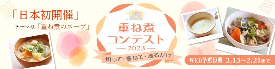 第1回重ね煮コンテストの応募35点は全て子育て中のママの作品です。旬の食材やシンプルな調味料の使い方に工夫を凝らした子供の健康への想いがつまった作品が寄せられています。2月13日からはWEB予選を開始します。1票を投じ流ことで、これまで「重ね煮」を知らなかった方にも興味を持っていただき、子育て中のママ、パパの負担軽減やSDGSに貢献できたらと考えております。