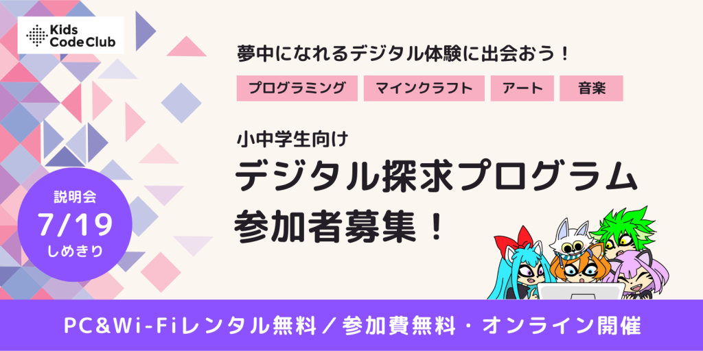 Kids Code Club、経済的な事情を抱える小中学生向けにPC・Wi-Fiとプログラミング学習支援をセットで無償提供する「デジタル探求プログラム」を開始